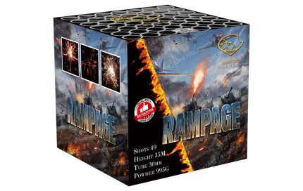 This long lasting cake starts at a steady pace then speeds up filling the sky with strobes, crackling tails and willows. Fantastic for any celebration
