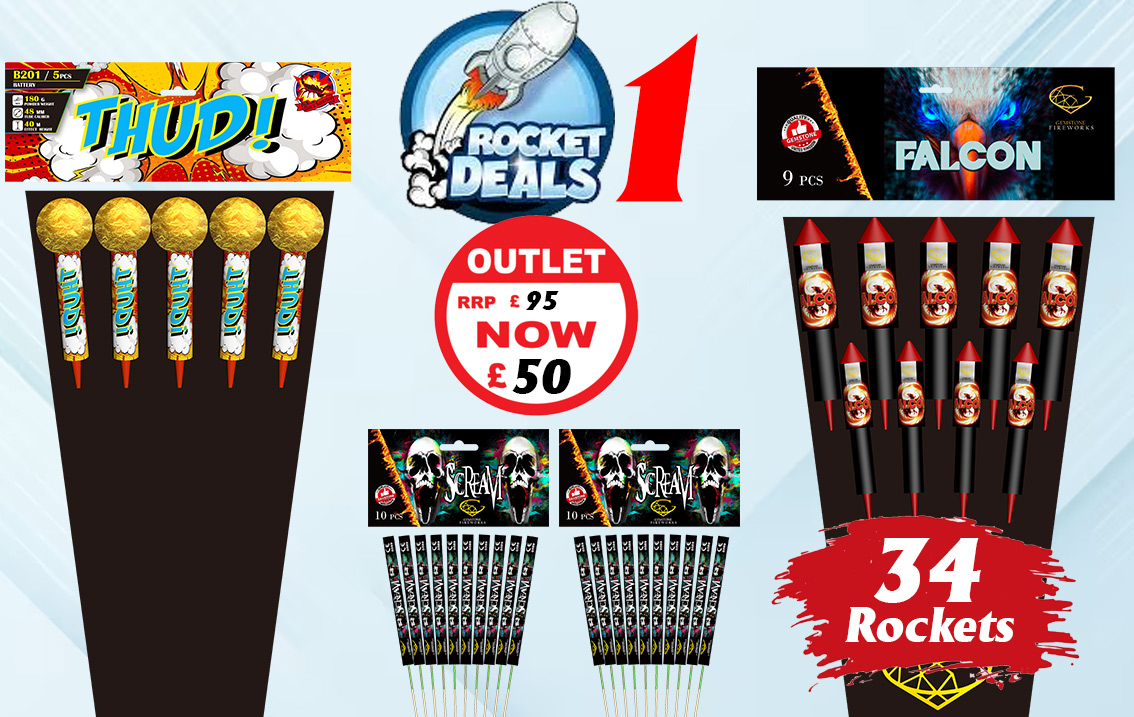 Get ready for an explosive display with this outstanding rocket bundle—perfect for lighting up the sky with a mix of power, colour, and noise!